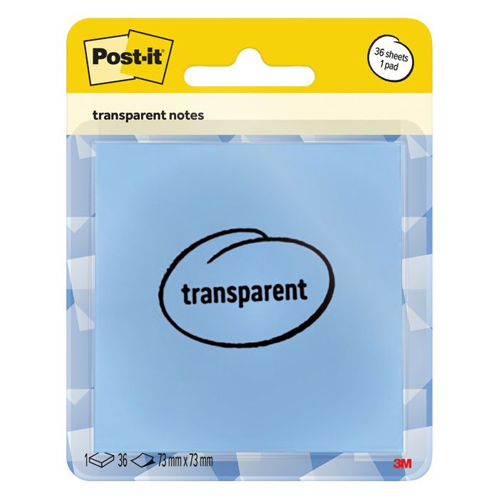 Blok samoljepljiv 73x73mm 36L Post-it 3M. 600-1TRSPB prozirno plavi blister