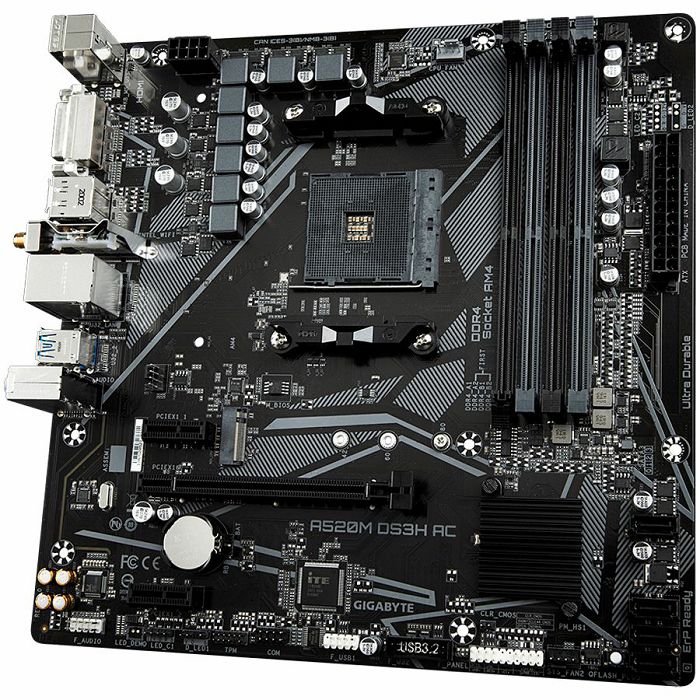 GIGABYTE A520M DS3H AC, Socket AM4, 4x DDR4, WiFi, mATX