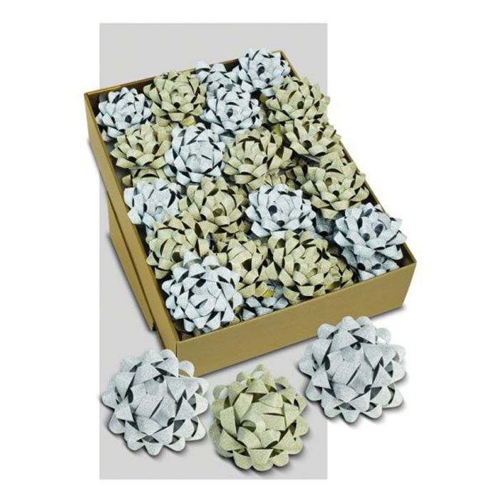 Mašna ukrasna samoljepljiva 80 mm Poly Glitter Prasent 18540-099 sort zlatna/srebrna