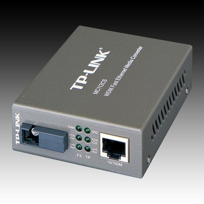 Media Filter TP-Link MC112CS, 1 x 100M SC port, 1 x 100M RJ45 port (Auto MDI/MDIX), 1310nm Tx/1550nm Rx, Half/Full-Duplex transfer mode for FX port, Full Duplex Flow Control (IEEE 802.3x), Half Duplex