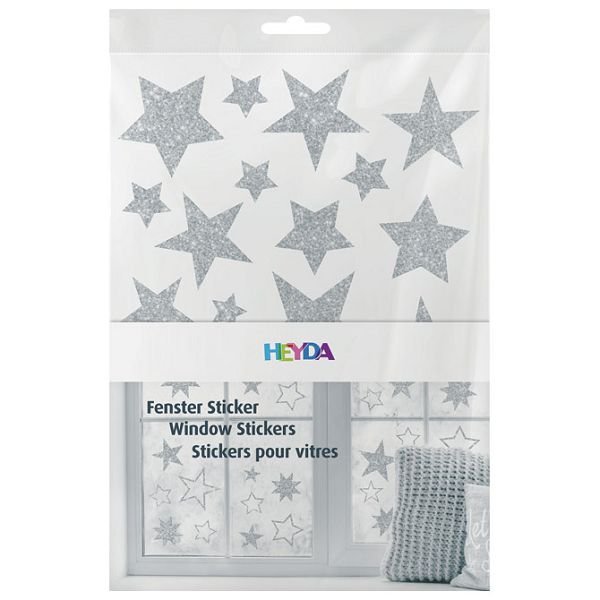 Naljepnice ukrasne za staklo A4 Zvijezde pk3 Heyda 20-35844 70 glitter srebrne blister