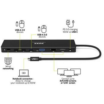 Port docking travel USB-C,1x4K ili 2xFHD, do 100W