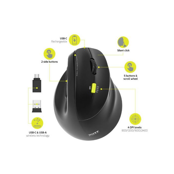 Port miš 2.4 GHz BT erg. punjivi za dešnjake, crni