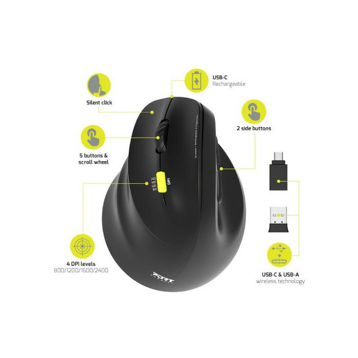 Port miš 2.4 GHz BT erg. punjivi za ljevake, crni