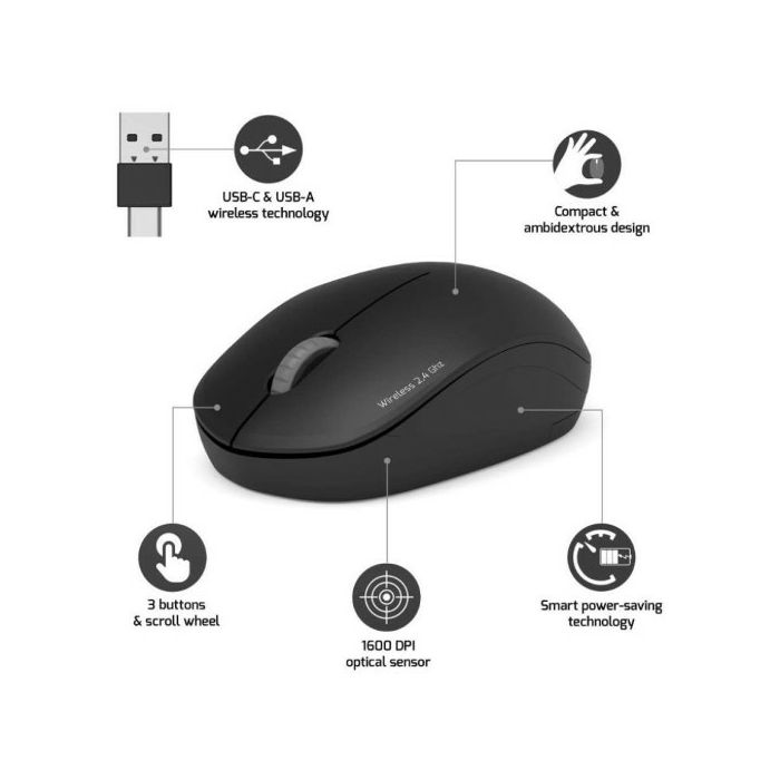 Port miš OFFICE bežični USB-A/USB-C, crni