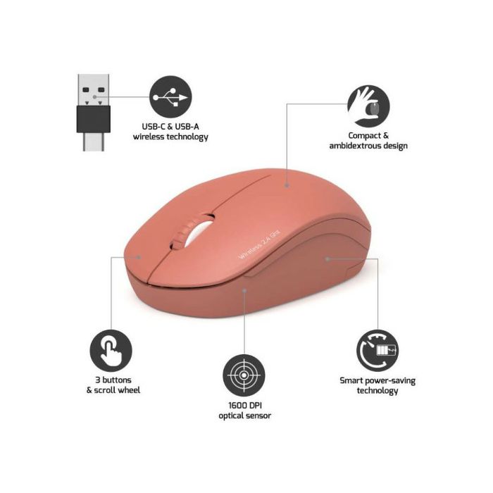 Port miš OFFICE bežični USB-A/USB-C, narančasti
