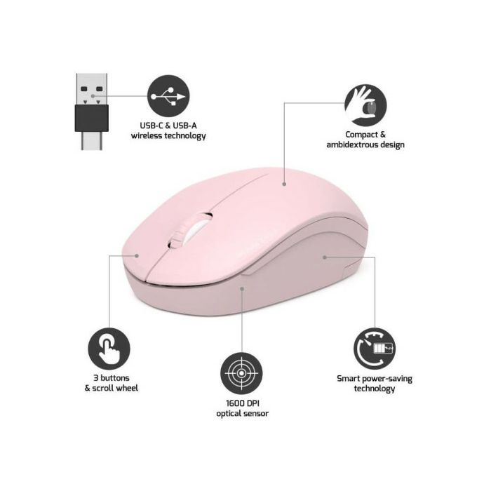 Port miš OFFICE bežični USB-A/USB-C, roza