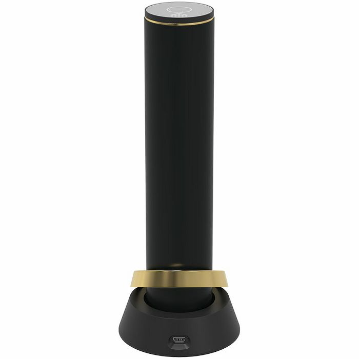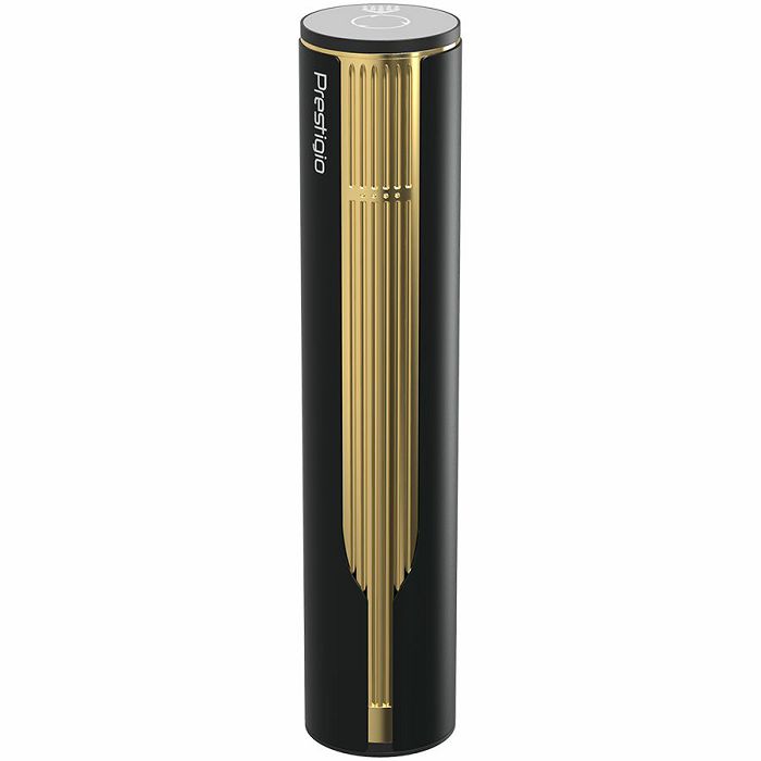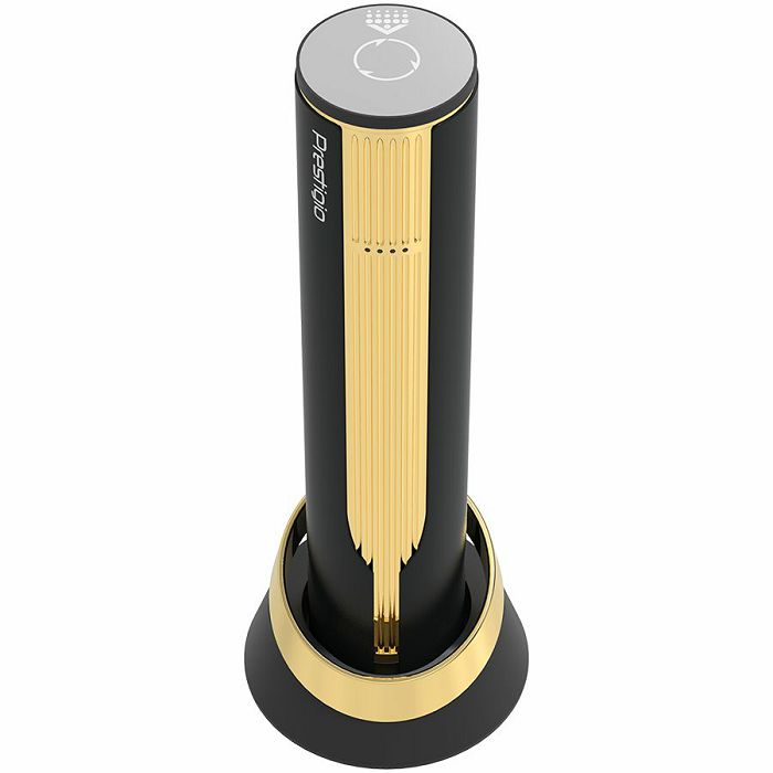 Prestigio Maggiore, smart wine opener, 100% automatic, opens up to 70 bottles without recharging, foil cutter included, premium design, 480mAh battery, Dimensions D 48*H228mm, black + gold color.