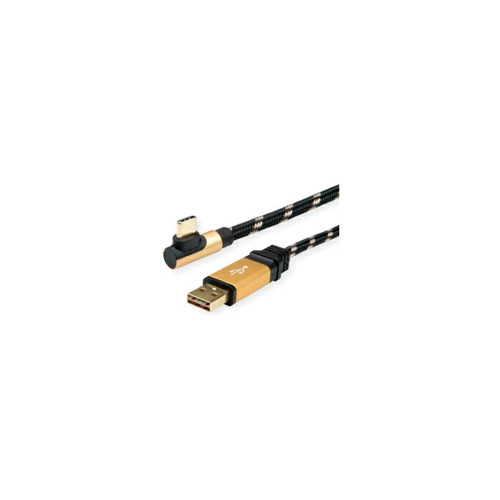 Roline GOLD USB2.0 kabel TIP A (M) - USB-C (M) kutni, 3.0m, crno/zlatni