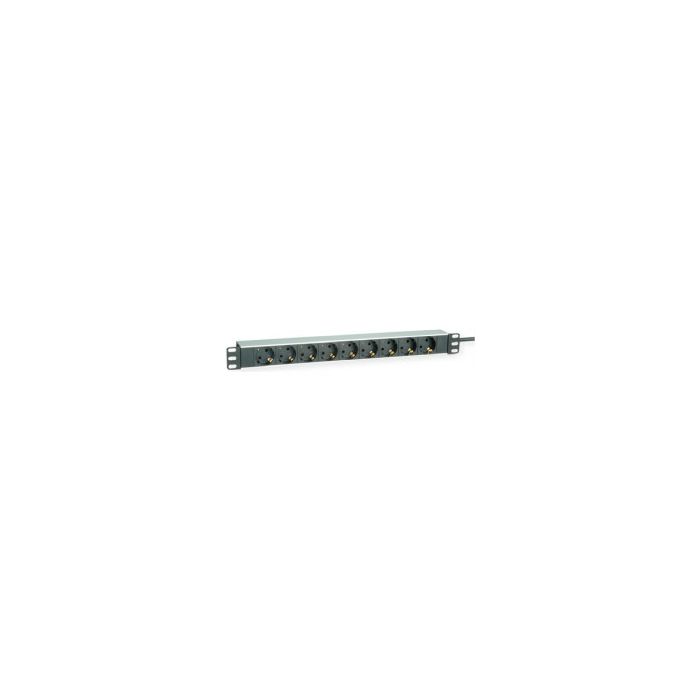 Roline strujna priključnica 19", 9×Schuko, 45°, 16A, Schuko priključak kabela, 2.0m, aluminium