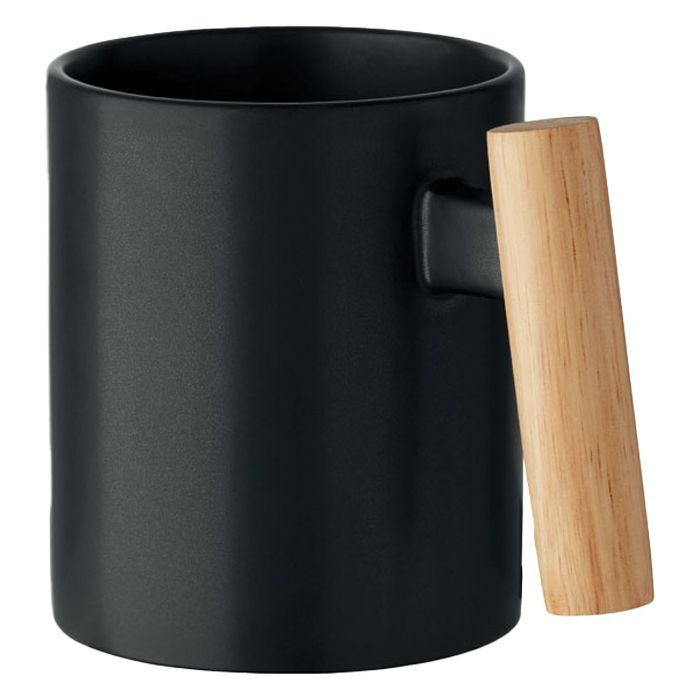 Šalica keramička 320ml Crenate sa drvenom drškom crna