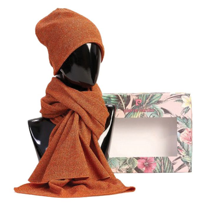 Set poklon ženski kapa i šal Pierre Cardin 1085 naranđasti
