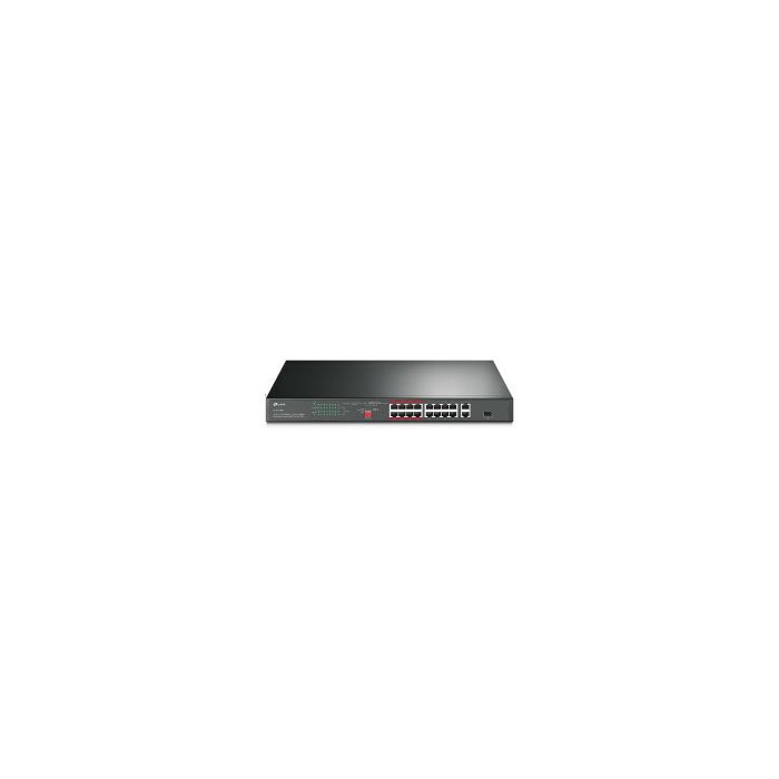 - 16× PoE+ 10/100 Mbps RJ45 portova, 2× Gigabit RJ45 porta i 1× kombinirani Gigabit SFP utor.