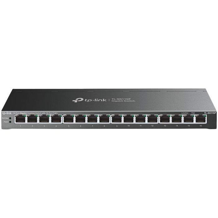 TP-Link TL-SG116P 16-Port Gigabit Desktop Switch with 16-Port PoE+, 802.3at/af, 120 W PoE Power, Desktop Steel Case, Extend Mode for 250m PoE Transmitting, Priority Mode for Port1-4, Isolation Mode, P