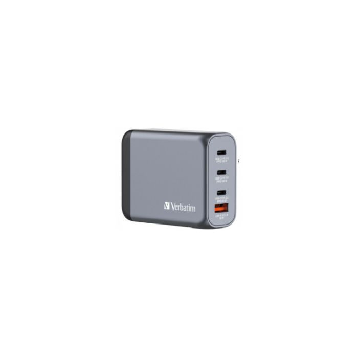- Verbatim’s 100W GaN Wall Charger consolidates multiple chargers into one, combining two USB-C PD 100W ports, one USB-C PD 65W port and one USB-A QC 3.0 (EU/UK/US) port in a sleek, palm sized design. Ideal for the office, home or travelling to power your laptop, tablet, smartphone, gaming devices, and more.